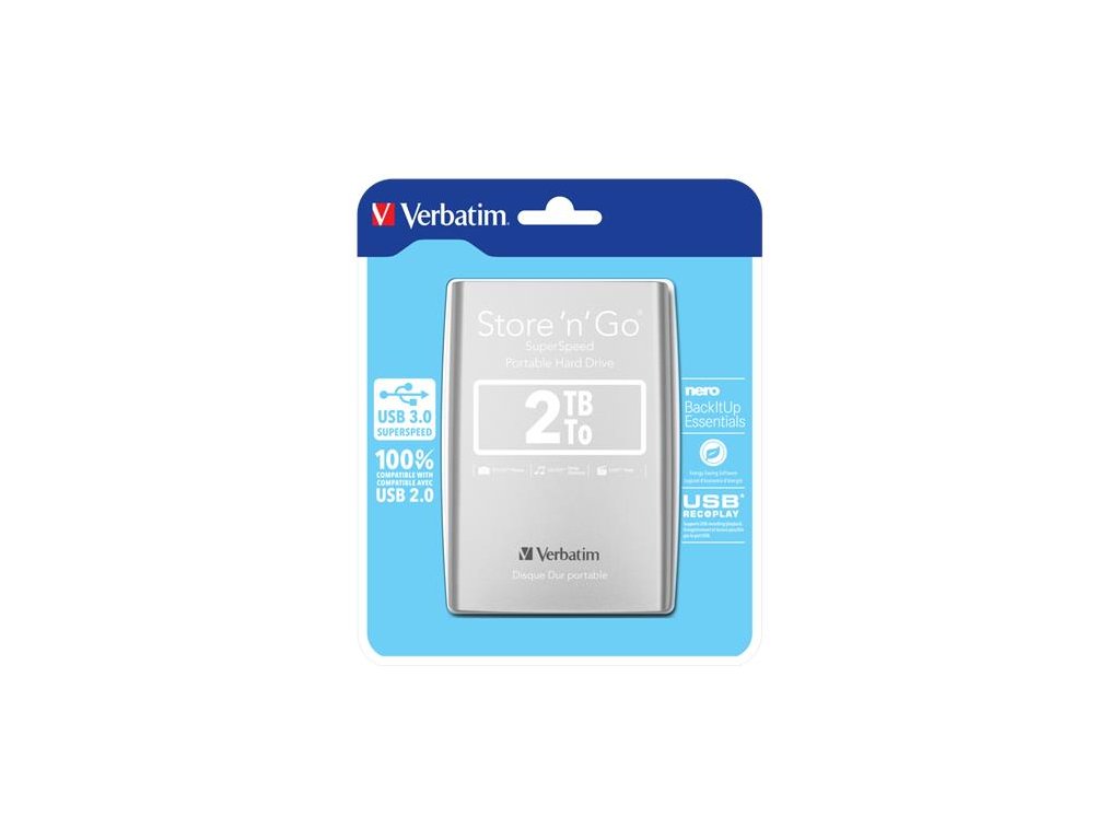 2,5" HDD (pevný disk), 2TB, USB 3.0, VERBATIM, strieborná