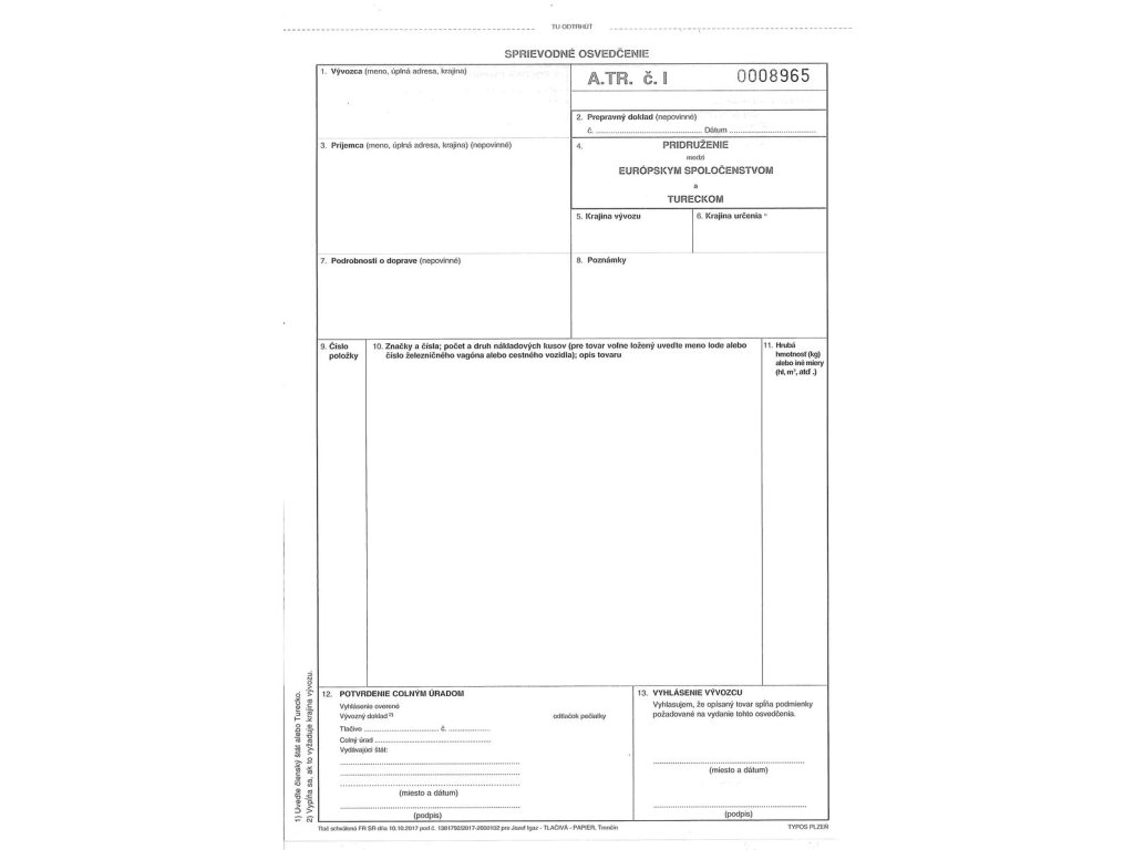 A.TR Sprievodné osvedčenie/pre Turecko/