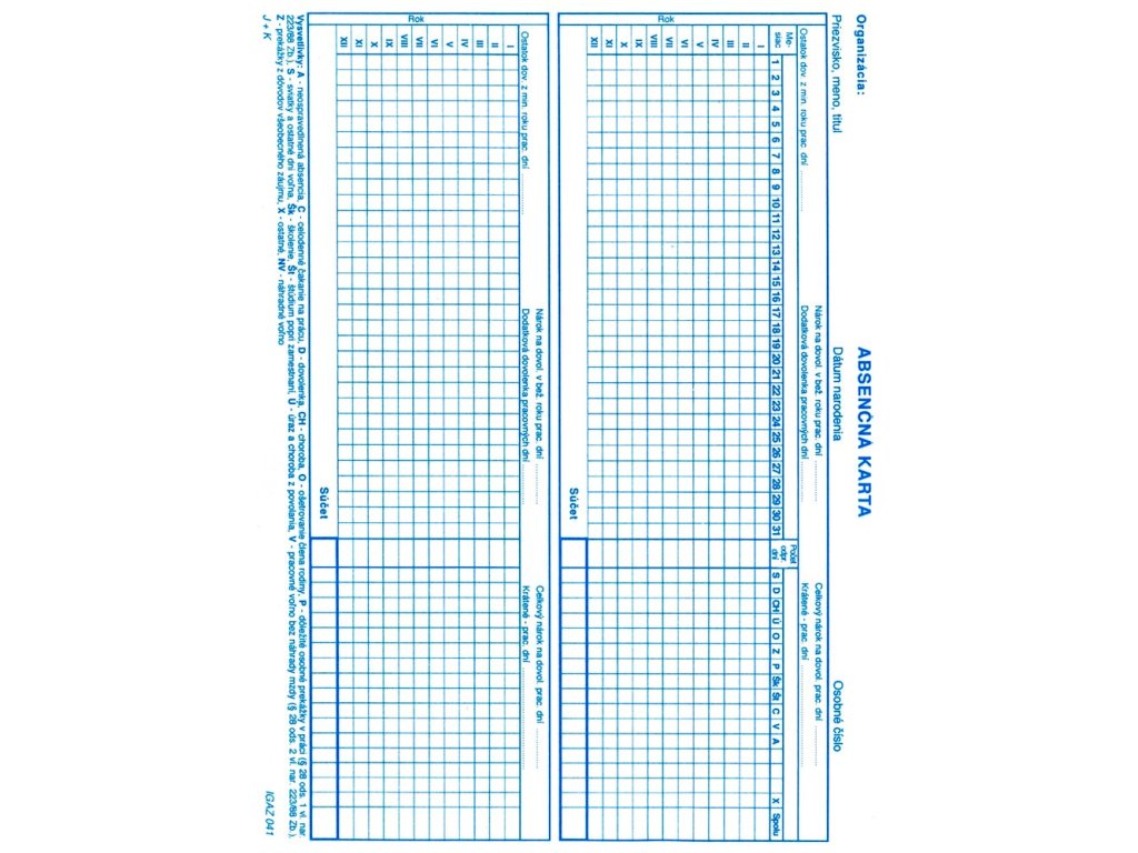 Absenčná karta A5