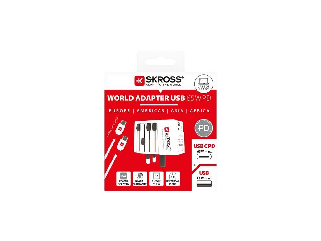 Adaptér pre svetových cestovateľov, 1xUSB-A, 1xUSB-C PD, 65W, USB-C kábel, SKROSS