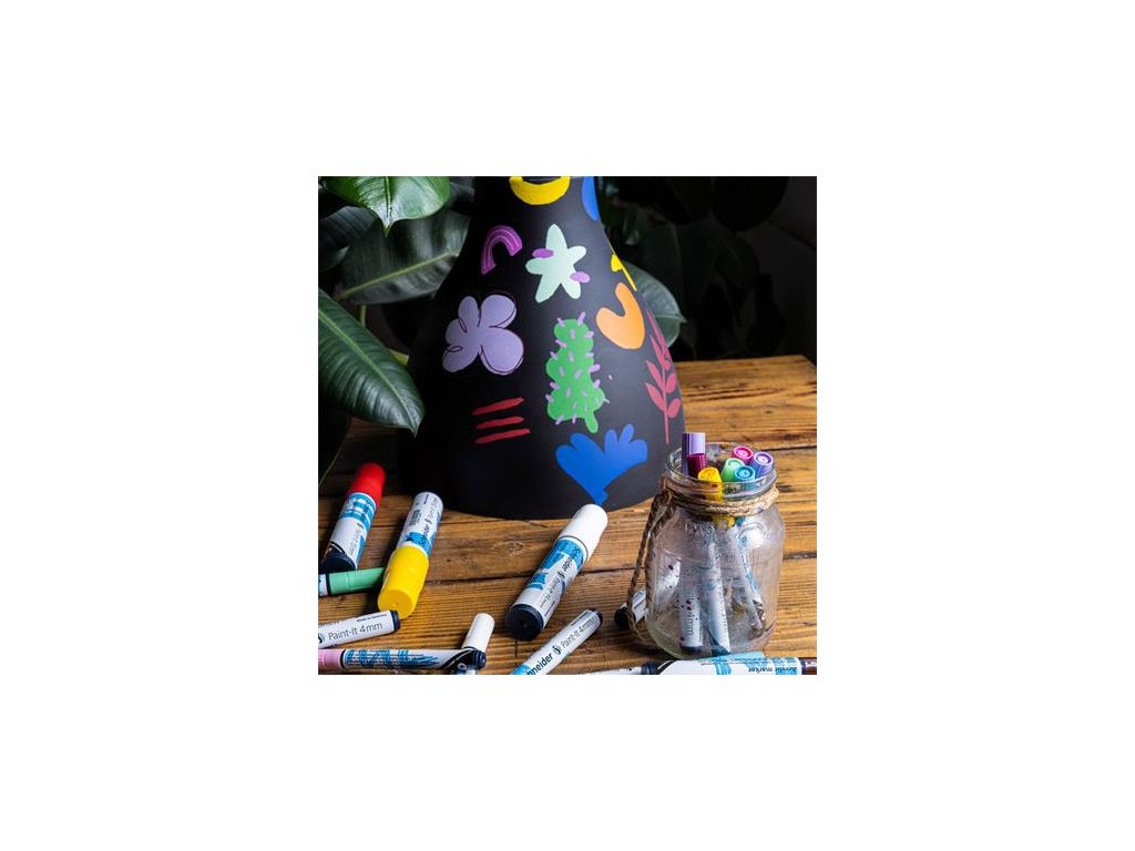 Akrylový popisovač Hrúbka písma: 2 mm Môže byť použitý na takmer akýkoľvek povrch (drevo, kov, papier, lepenka, kameň atď.) Kužeľový hrot Farba uzáveru je rovnaká ako farba atramentu Ventilový mechanizmus Atrament na báze vody, bez zápachu, rýchlo schnúci a odolný voči poveternostným vplyvom Dobré pokrytie Neblednúce, žiarivé farby Vhodný na vonkajšie aj vnútorné použitie Pred použitím pretrepaťDodatočné parametre