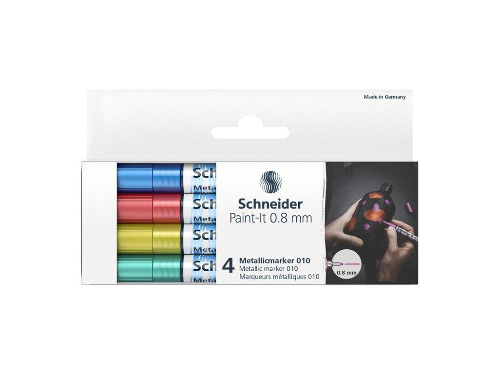 Akrylový popisovač, sada, 0,8 mm, SCHNEIDER "Paint-It 010", 4 rôzne farby