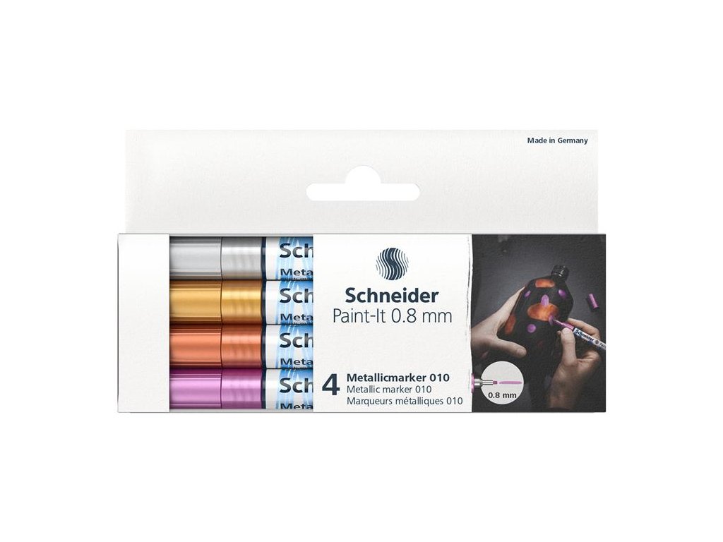 Akrylový popisovač, sada, 0,8 mm, SCHNEIDER "Paint-It 010", 4 rôzne farby