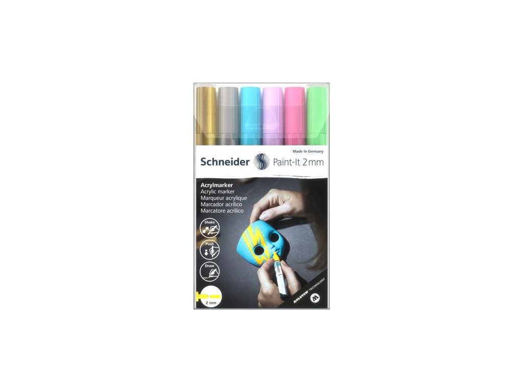 Akrylový popisovač, sada, 2 mm, SCHNEIDER "Paint-It 310", 6 rôznych farieb