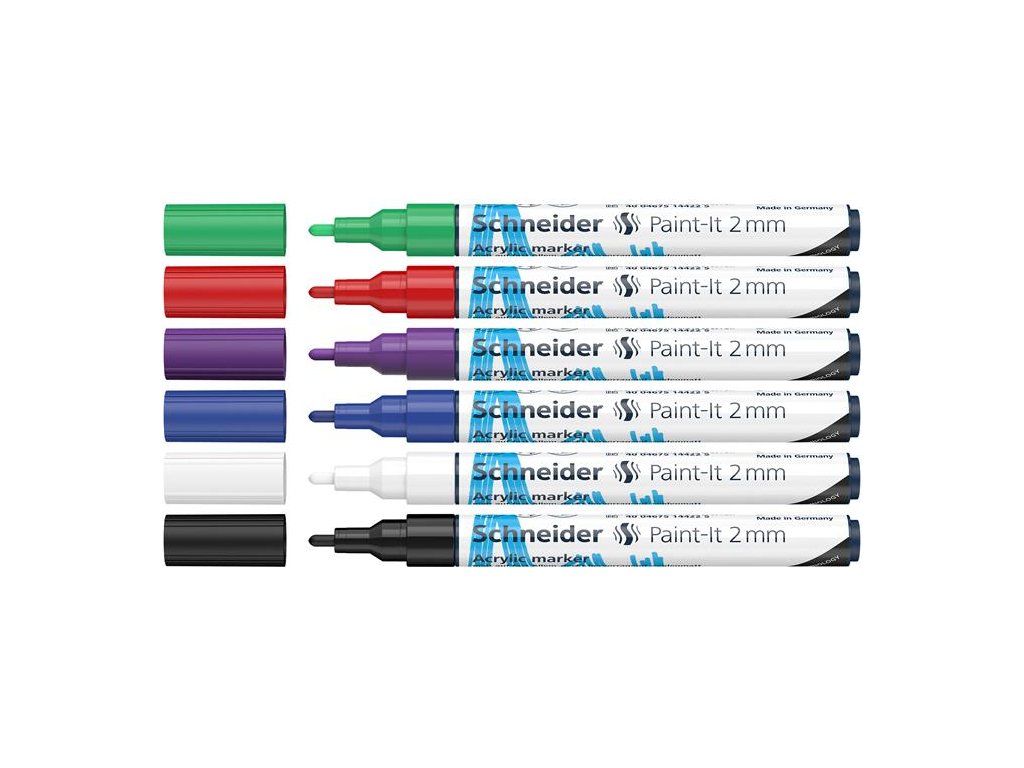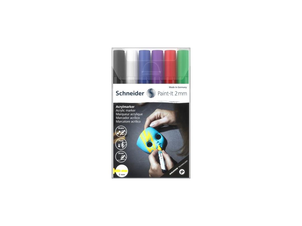 Akrylový popisovač, sada, 2 mm, SCHNEIDER "Paint-It 310", 6 rôznych farieb