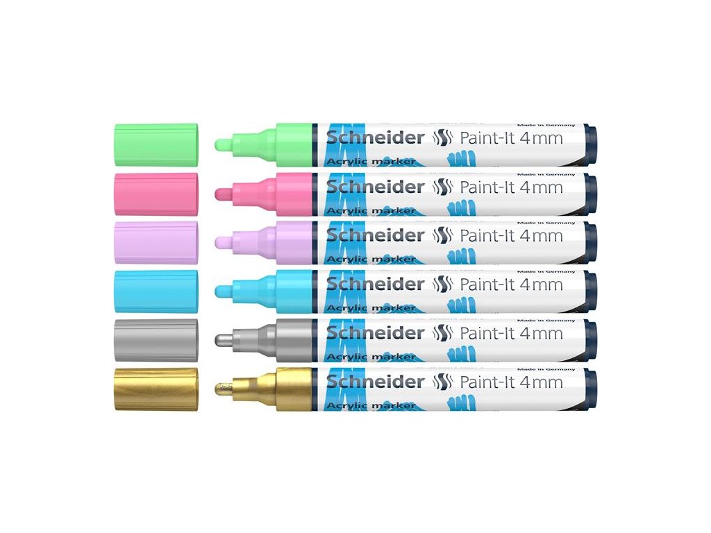 Akrylový popisovač, sada, 4 mm, SCHNEIDER "Paint-It 320", 6 rôznych farieb