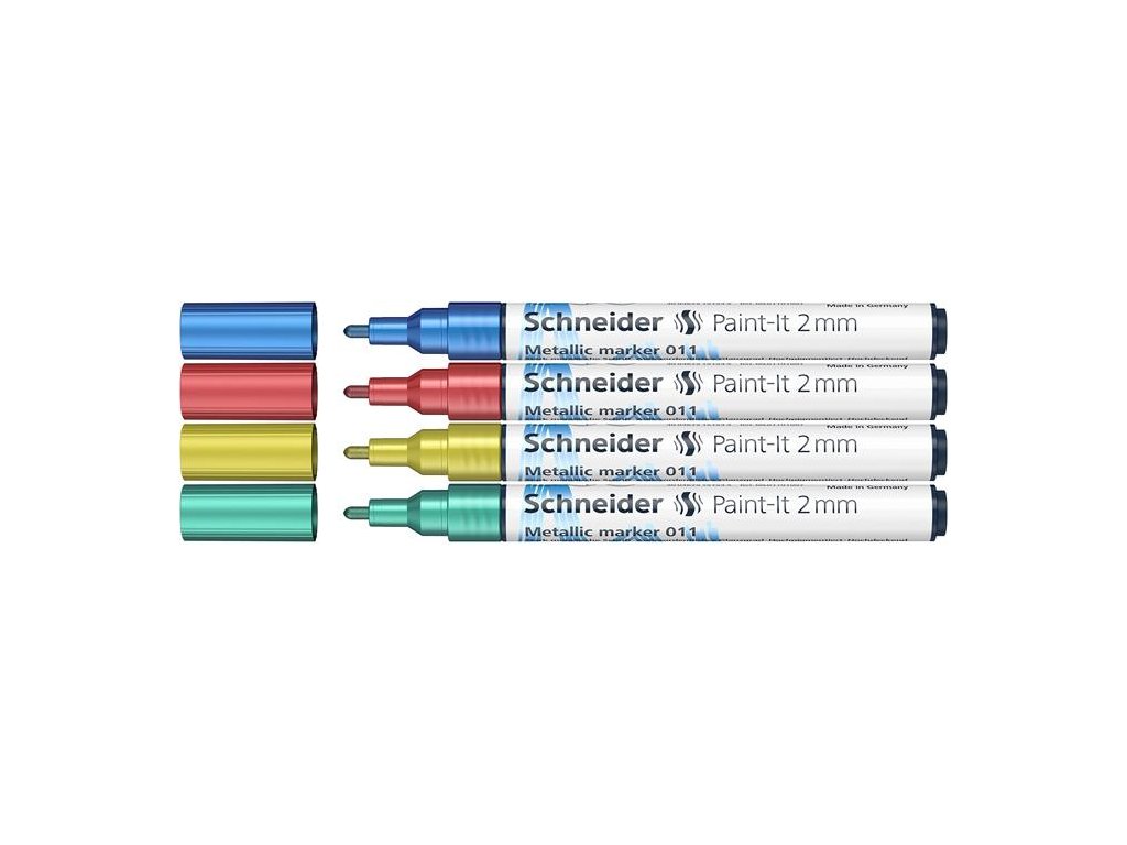 Akrylový popisovač, sada, 2 mm, SCHNEIDER "Paint-It 011", 4 rôzne farby