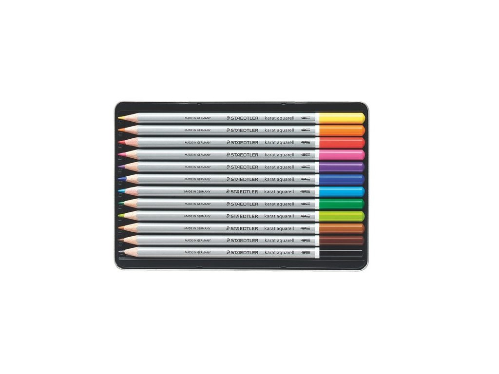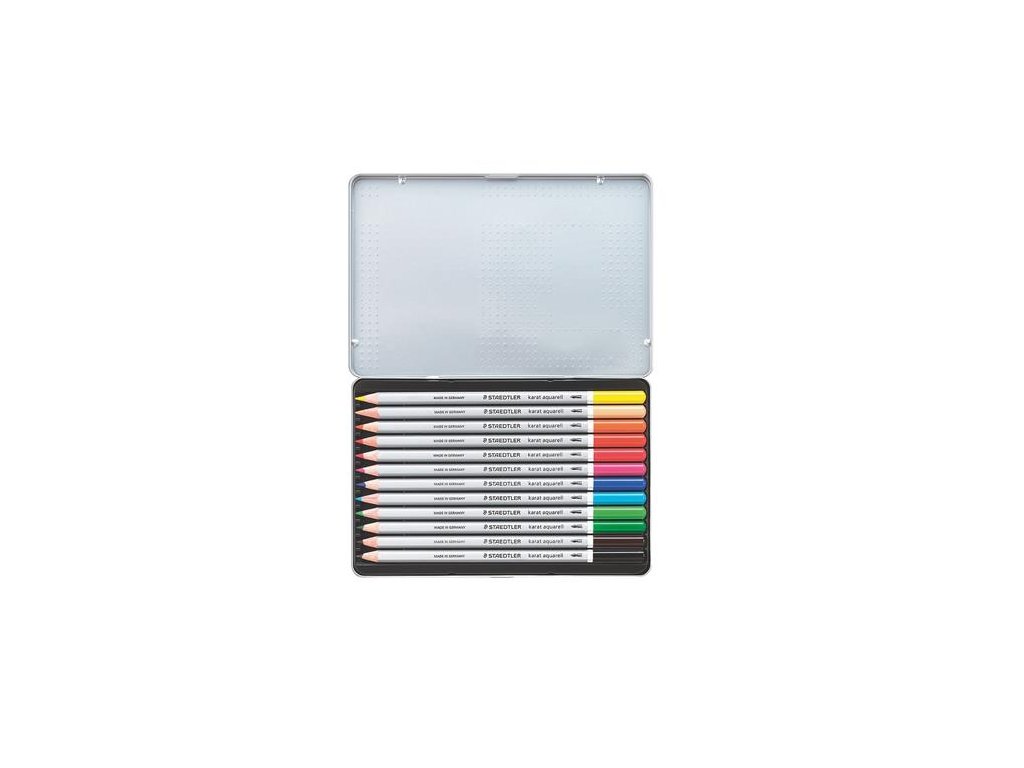 Akvarelová ceruzka, sada, šesťhranná, plechová krabička, STAEDTLER "Karat® aquarell 125", 12 rôznych farieb