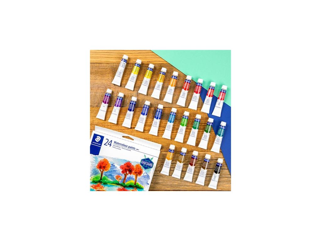 Akvarelové farby, v tube, STAEDTLER "8880", 24 rôznych farieb