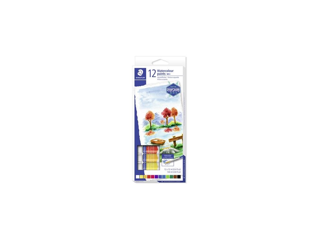 Akvarelové farby, v tube, STAEDTLER "8880", 12 rôznych farieb
