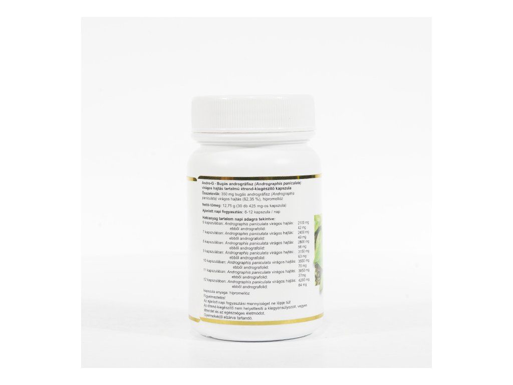 Vyrába sa z byliny právenka metlinatá (Andrographis paniculata). Bylina, ktorá sa používa ako v ajurvéde, tak v tradičnej čínskej medicíne. Výživové zložky (v 6 tabletách): • Andrographis paniculata: 2100 mg • Z toho Andrografolid: 42 mg Zloženie: 350 mg Právenka letná (Andrographis paniculata) 82,35%; hypromelóza Parametre Balenie 38,25 g Dávkovanie 6-12 kapslí denně Doplnok stravy neslúži ako náhrada pestrej stravy a nenahrádza lieky predpísané lekárom. Neprekračujte odporúčané denné dávkovanie. Skladujte na chladnom a suchom mieste. Uchovávajte mimo dosahu detí.