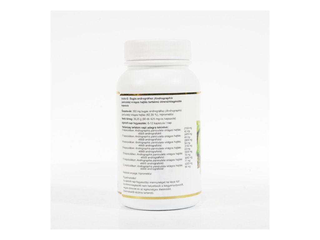 Vyrába sa z byliny právenka metlinatá (Andrographis paniculata). Bylina, ktorá sa používa ako v ajurvéde, tak v tradičnej čínskej medicíne. Výživové zložky (v 6 tabletách): • Andrographis paniculata: 2100 mg • Z toho Andrografolid: 42 mg Zloženie: 350 mg Právenka letná (Andrographis paniculata) 82,35%; hypromelóza Dávkovanie: 6 až 12 kapsulí denne Doplnok stravy neslúži ako náhrada pestrej stravy a nenahrádza lieky predpísané lekárom. Neprekračujte odporúčané denné dávkovanie. Skladujte na chladnom a suchom mieste. Uchovávajte mimo dosahu detí.