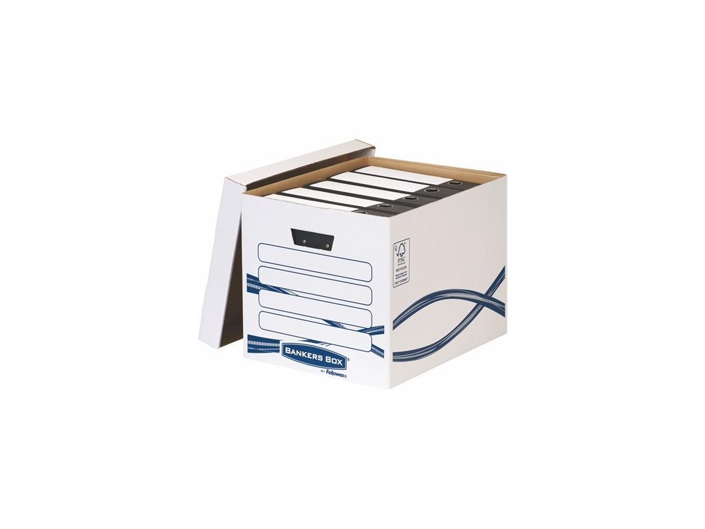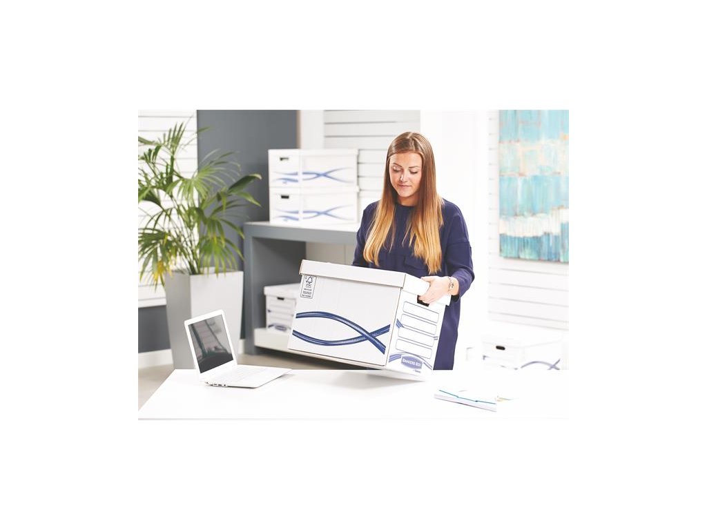 Archivačný kontajner, kartón, FELLOWES, "Bankers Box Basic Tall", modrá-biela