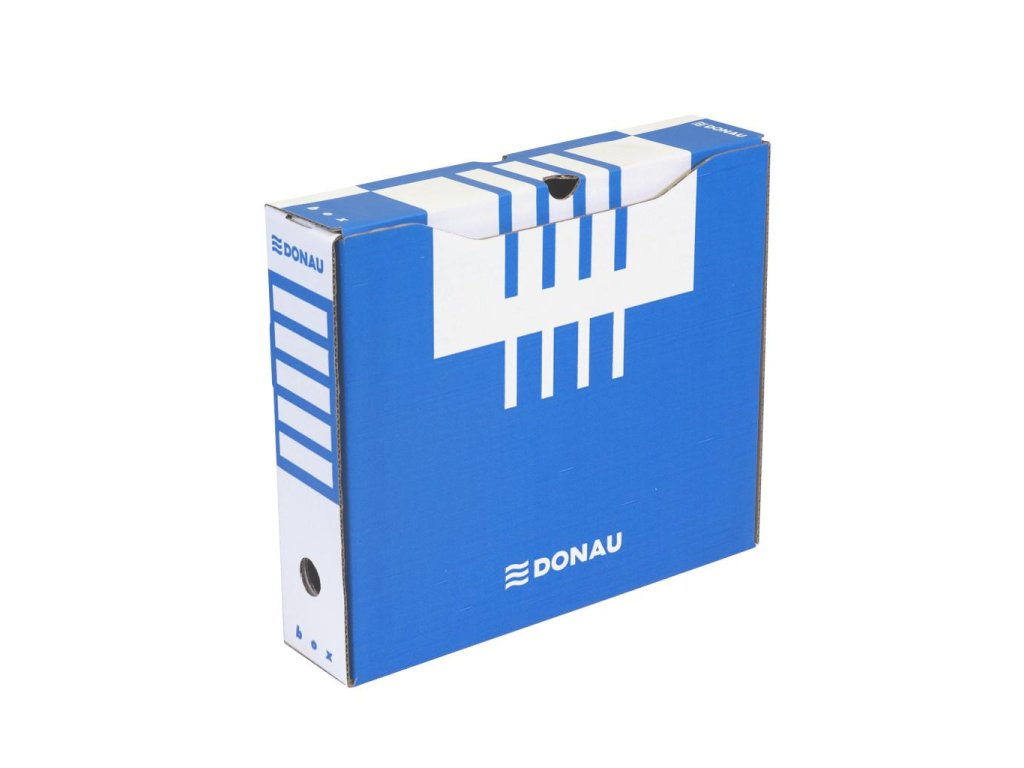 Archívny box z trojvrstvovej lepenky s certifikátom FSC® (drevo na jej výrobu pochádza z lesov, obhospodarovaných udržateľným spôsobom), bez obsahu kyseliny (pH 7,5). Vhodný na archiváciu dokumentov do formátu A4 s otvorom na ľahkú manipuláciu. Možnosť archivovať aj zakladač Donau. Predtlače na popis na dlhšej i kratšej strane umožňuje skladovanie vo vodorovnej aj zvislej polohe. Box je využiteľný samostatne alebo v kombinácii s archivačnými krabicami. Gramáž 390 g. Rozmery 297x80x339mm. Väčšie balenie 20 ks.Chrbát: 80 mm