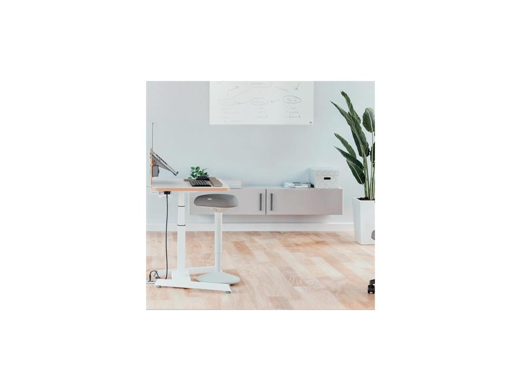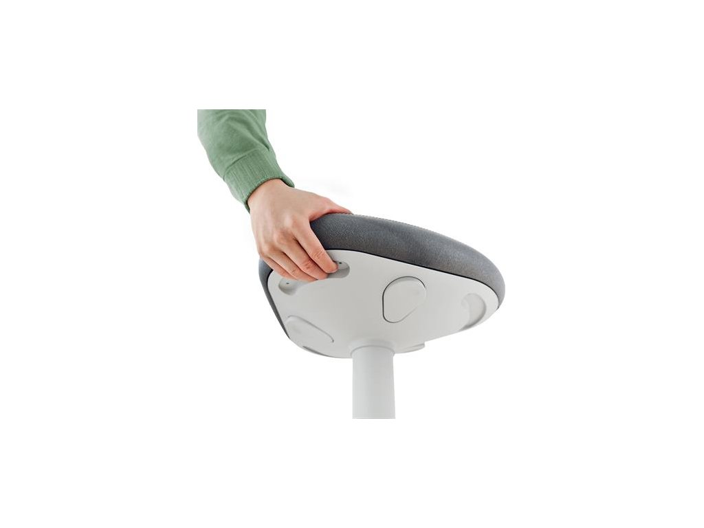 Zaoblená vahadlová základňa podporuje hojdavé a otáčavé pohyby, ktoré posilňujú chrbát a stred tela pri práci pri stole.