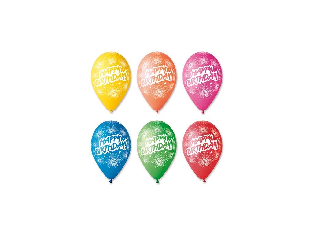 Balón, 30 cm, "Happy Birthday", ohňostroj