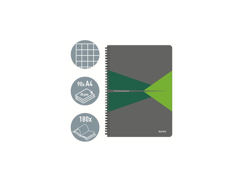 Blok, A4, štvorčekový, 90 listov, PP obálka, LEITZ "Office", sivá-zelená