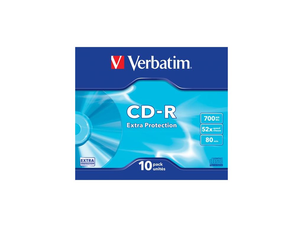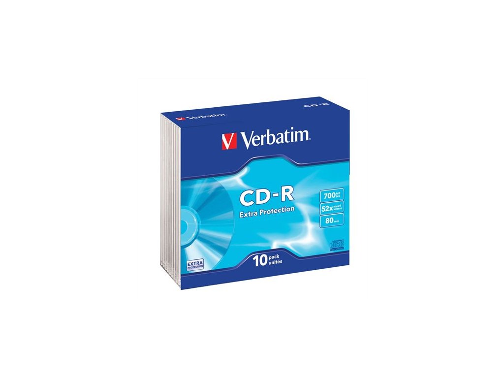 CD-R disk, 700 MB, 52x, 10 ks, tenký obal, VERBATIM "DataLife"