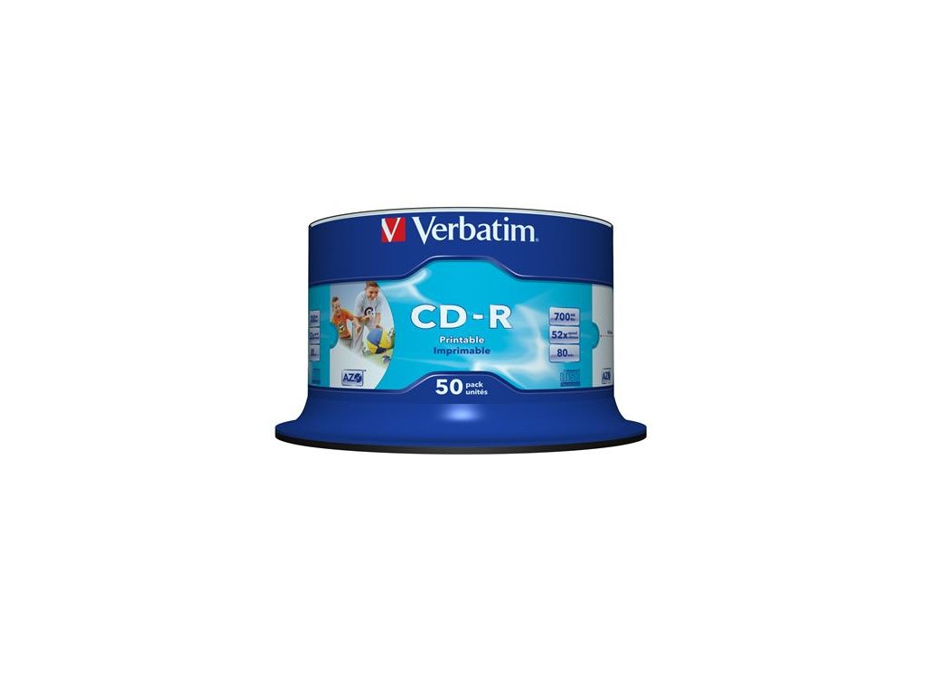 CD-R disk, potlačiteľný, matný, no-ID, AZO, 700MB, 52x, 50 ks, cake box, VERBATIM