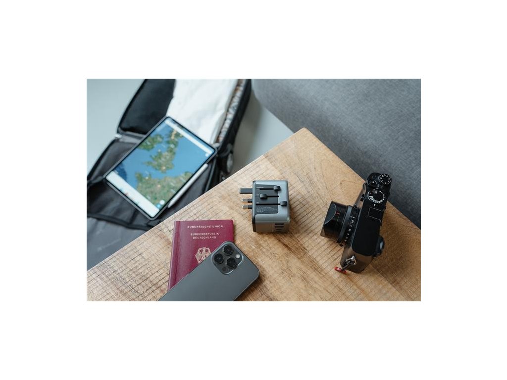 Univerzálny cestovný adaptér Verbatim je možné používať vo viac ako 180 krajinách: možno ho pripojiť k akémukoľvek miestnemu zdroju napájania na svete a dobíjať zariadenia náročné na energiu, ako sú notebooky a batérie do fotoaparátov. Porty USB-C a USB-A na spodnej strane môžete použiť na nabíjanie akéhokoľvek zariadenia USB. -kompaktné a bezpečné: certifikované FCC, UKCA, CE a ROHS -vyrobené z vysoko kvalitného ohňovzdorného polykarbonátového materiálu -má detské poistky (možno otvoriť silou minimálne 75 N (7,5 kg) na otvor) - typy konektorov akceptovaných adaptérom: Typ A, B, C, E, F, G, I, J, L, N - Upozorňujeme, že nasledujúce zástrčky nie sú kompatibilné: Typ D, Typ H, Typ K, Typ M , Typ O -zásuvky, ku ktorým je možné pripojiť cestovný adaptér: Typ A, B, C, D, E, F, G, H, I, J, K, L, M, N, O - podporuje PD 20W a QC 3.0 rýchle nabíjanie -formáty konektorov: EU, UK, USA/Japonsko, AUS -1 x USB-C napájanie 30 W a rýchle nabíjanie 3.0 výstup: 18 W -2 x USB-C výstup: max 15W -2 x USB-A výstup: max 12W -6 zariadení súčasne sa nabíja -kvalifikovaná poistka + náhradná poistka -AC vstup: 100V-250V, 50/60Hz -menovitý výkon: 100-250 Vac 10A Max, 2500W Max -USB-A1/A2 výstup: 5,0V 2,4 A 12,0W Max -USB-C1 /C2 výstup: 5,0V 3,0A 15,0W Max -USB-C Výstup portu PD: 5,0V 3,0A 15,0W, 9,0V 3,0A 27,0W , 12,0 V 2,5 V A 30,0 2,0 A 30,0 W, 20,0 V 1,5 A 30,0 W -poistka: v súlade s BS1362 -NIE je menič napätia -len pre vnútorné použitie - 2-ročná obmedzená doživotná zárukaDodatočné parametre