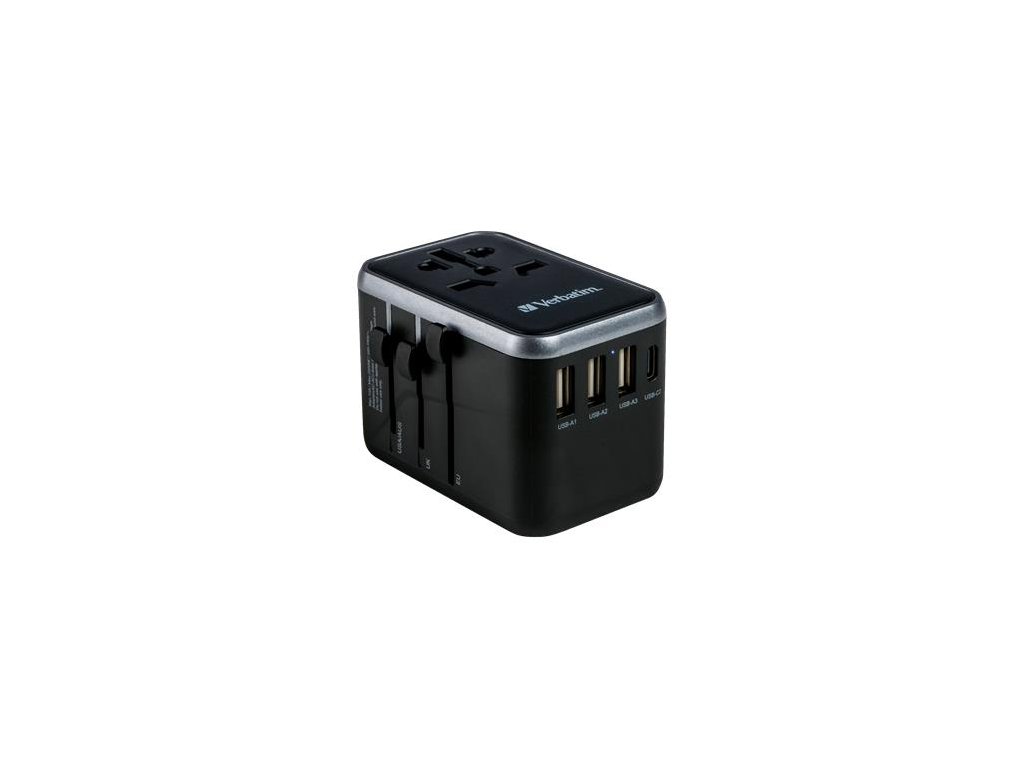 Cestovný adaptér, univerzálny, USB-A(QC 3.0)/USB-C(PD61W)2xUSB, VERBATIM "UTA-04"