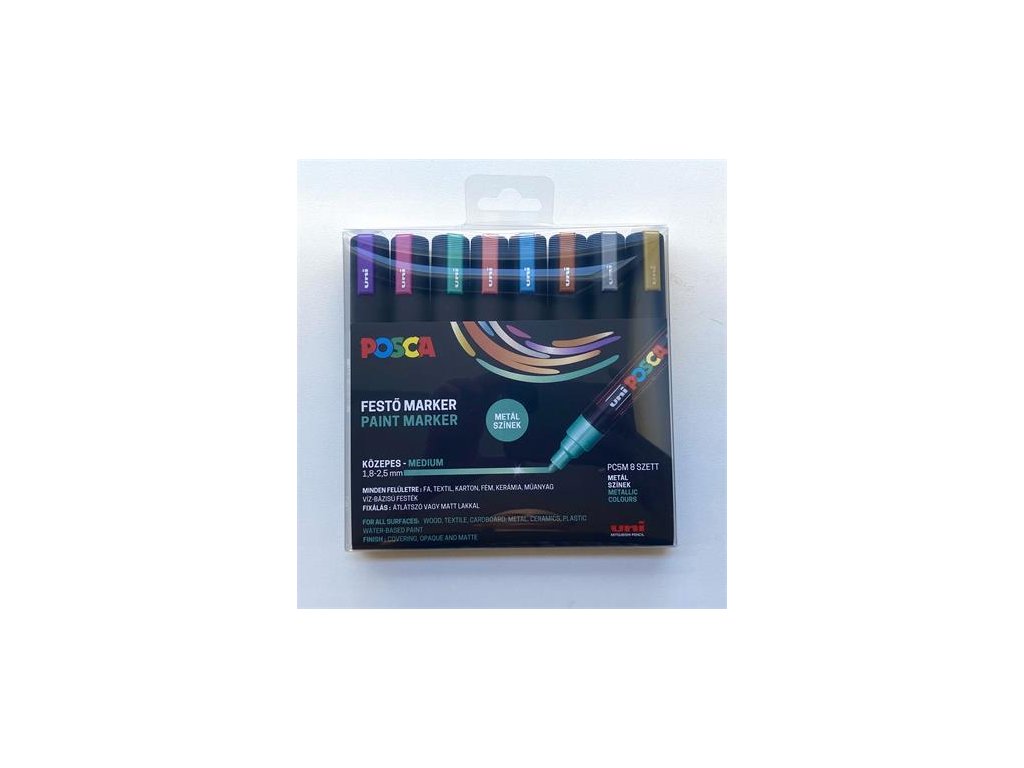 Dekoračný popisovač, 1,8-2,5 mm, UNI "Posca PC-5M", 8 rôznych kovových farieb
