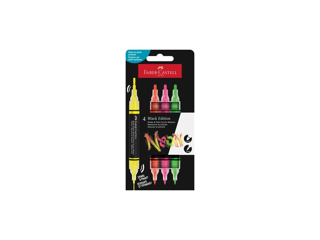 Dekoračný popisovač, sada, 1,0/3,0 mm, obojstranný, akrylový, FABER-CASTELL "Shake&Paint", 4 rôzne neónové farby