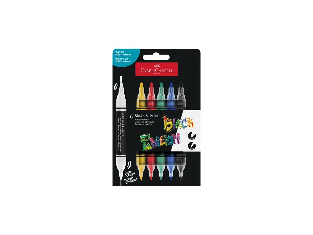 Dekoračný popisovač, sada, 1,0/3,0 mm, obojstranný, akrylový, FABER-CASTELL "Shake&Paint", 6 rôznych farieb