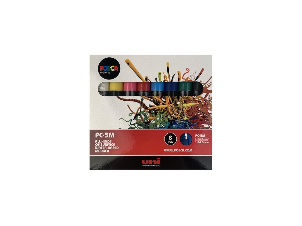 Dekoračný popisovač, sada, 1,8-2,5 mm, UNI "Posca PC-5M", 8 rôznych farieb