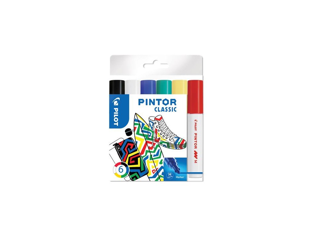 Dekoračný popisovač, sada,1,4 mm, PILOT "Pintor M", 6 druhov klasických farieb