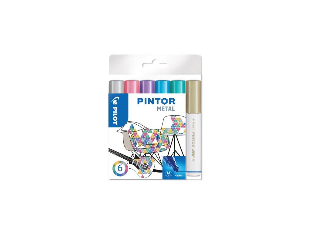 Dekoračný popisovač, sada,1,4 mm, PILOT "Pintor M", 6 druhov metalických farieb