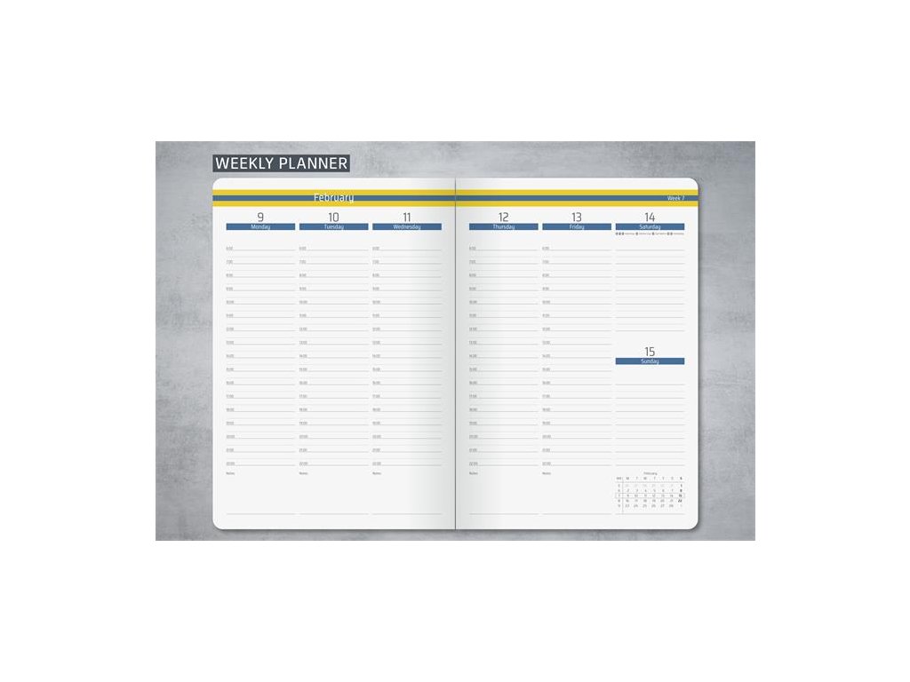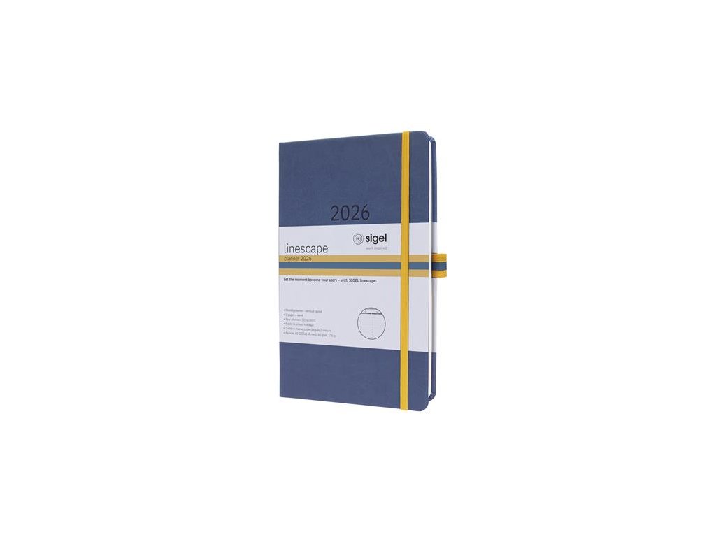 Diár, A5, týždenný, 2026, tvrdá obálka, SIGEL "Linescape", modrý-žltý