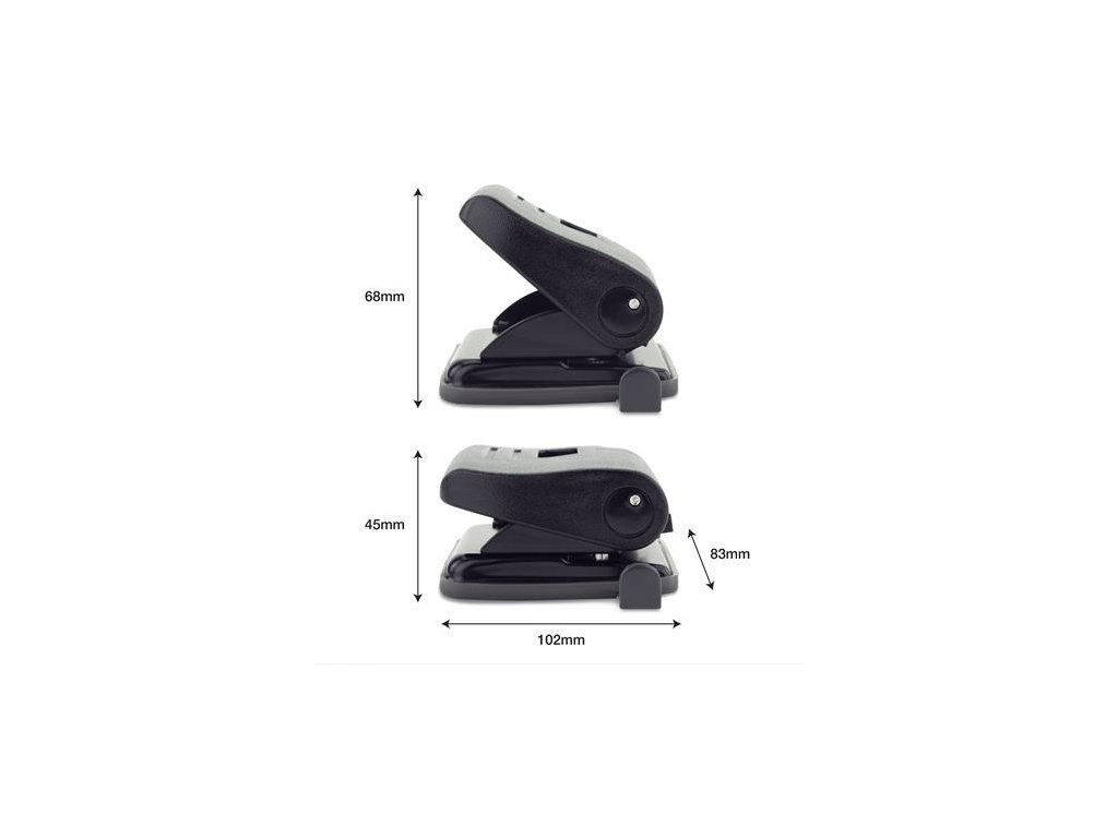 - ručná, dvojdierová dierovačka - plastové pokrytie, kovová konštrukcia - ľahko vyprázdniteľná tácka s odpadom - popisovateľná menovka - kapacita: 22 listov - priemer dier: 6 mm - vzdialenosť dier: 80 mm - nastaviteľná vzdialenosť dier: nie - príložník: áno - uľahčené dierovanie: nie - zámok: áno - rozmery: 102 x 83 x 45 mm (zložený) 68 mm (otvorený) - farba: čierna - 15 ročná záruka Značka: RAPESCO Výrobca: Rapesco-Tacwise BV Adresa: Kraijenhoffstraat, 137A, 1018RG Amsterdam, Netherlands Web: www.rapesco.com Email: support@rapesco-tacwise.nlDodatočné parametre