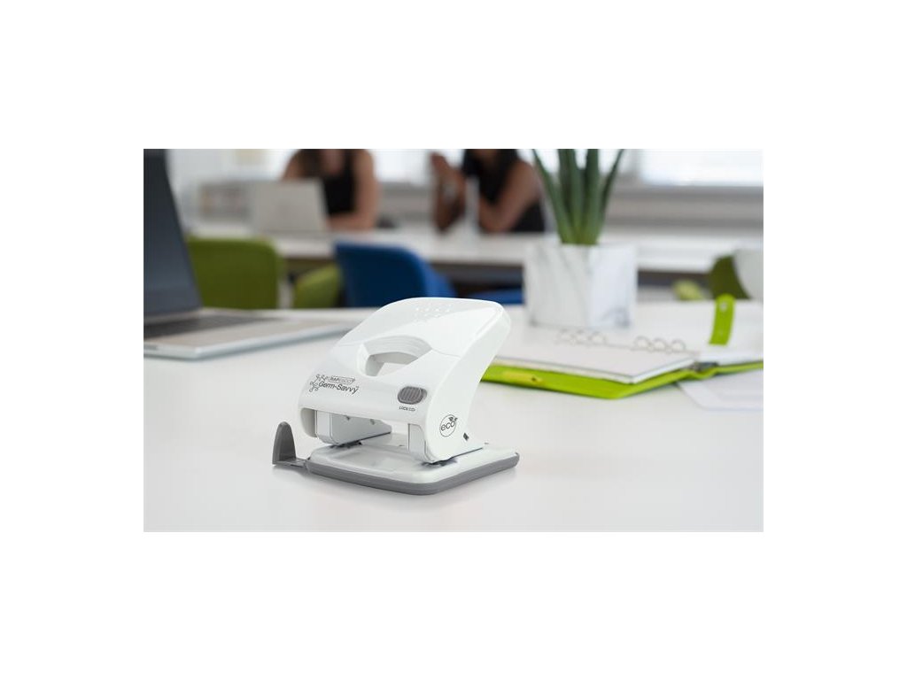 Dierovačka, 2-dierová, 40 listov, uľahčené dierovanie, antibakteriálna, RAPESCO "ECO-X5", biela