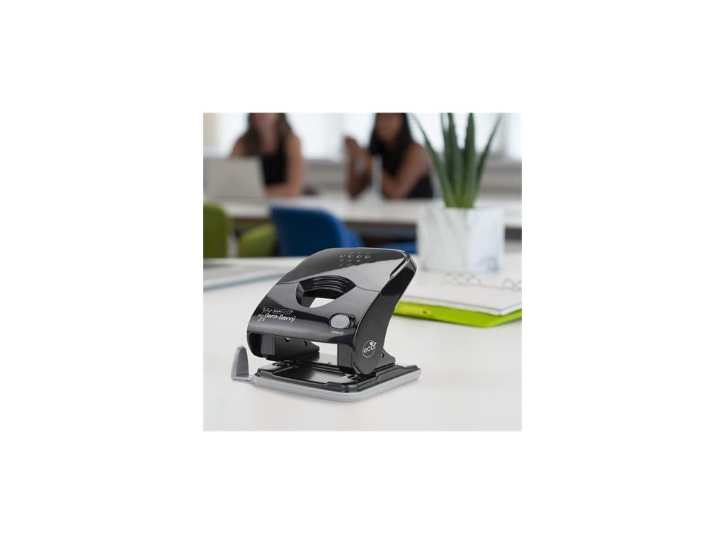 Dierovačka, 2-dierová, 40 listov, uľahčené dierovanie, antibakteriálna, RAPESCO "ECO-X5", čierna