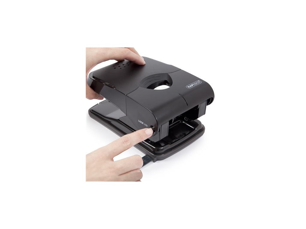 - ručná, dvojdierová dierovačka - plastové pokrytie, kovová konštrukcia - ľahko vyprázdniteľná tácka s odpadom - popisovateľná menovka - kapacita: 50 listov - priemer dier: 6 mm - vzdialenosť dier: 80 mm - nastaviteľná vzdialenosť dier: nie - príložník: áno - uľahčené dierovanie: o 60% nižšia silová námaha - zámok: áno - rozmery: 115 x 171 x 86 mm (zložený) 201 mm (otvorený) - farba: čierna - 15 ročná záruka Značka: RAPESCO Výrobca: Rapesco-Tacwise BV Adresa: Kraijenhoffstraat, 137A, 1018RG Amsterdam, Netherlands Web: www.rapesco.com Email: support@rapesco-tacwise.nlDodatočné parametre