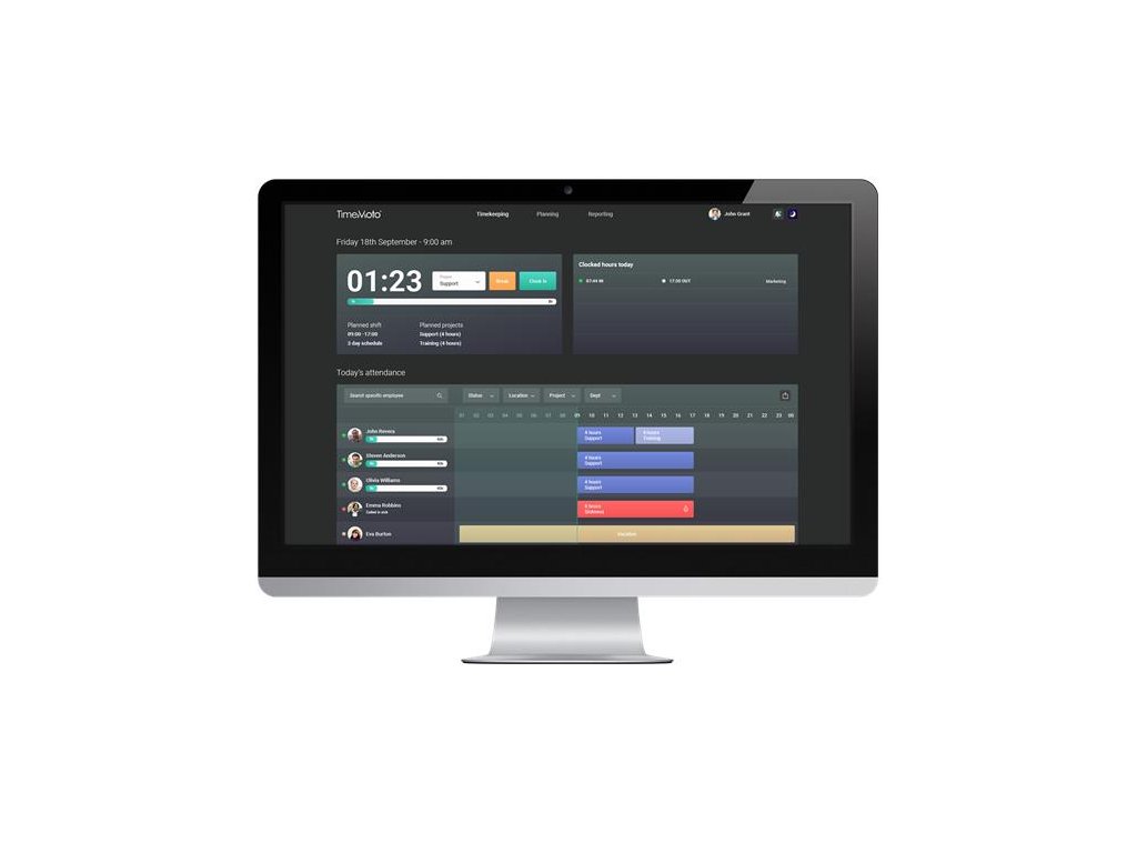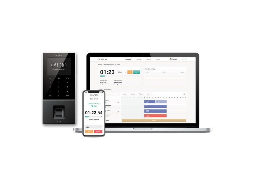 - prístup k zaznamenaným údajom v reálnom čase - klávesnica s dotykovým displejom - 3,5 "TFT displej - vstup: RFID - Wifi, Ethernet, USB pripojenie - možnosť nastavenia kódu projektu (dovolenka, mimo domu atď.) - široká možnosť skríningu (na zamestnanca / oddelenie) - odpracovaná hodina / prestávka je presne zaznamenaná - kalkulačka nadčasov - tvorba reportov exportom do Excelu, CSV, PDF - až 2 000 používateľov - čierna farba - jednoduchá montáž na stenuDodatočné parametre
