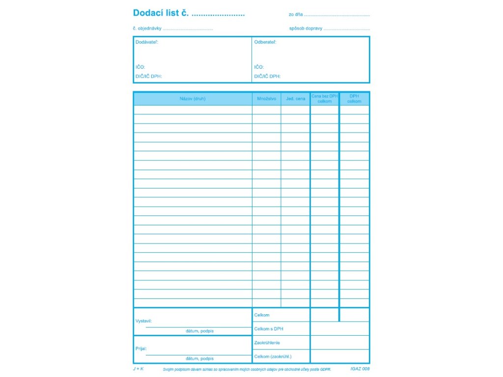 | Kategória: | tlačivá Obchodné |
