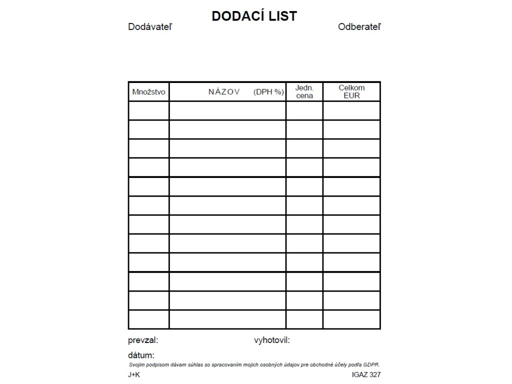 | Kategória: | tlačivá Obchodné |