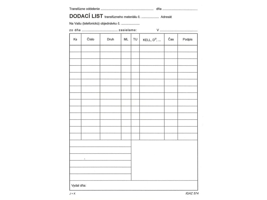 Dodací list transfúzneho materiálu A5 100-listov