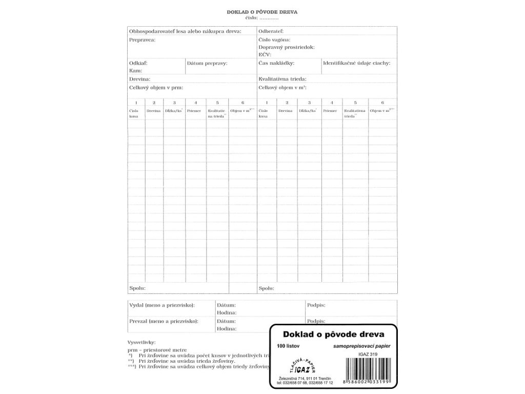 Doklad o pôvode dreva A4 - samoprepis