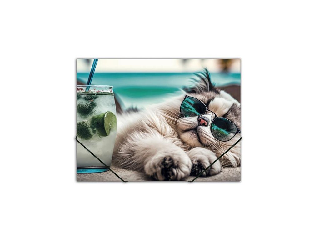 Doska s gumičkou, 15 mm, PP, A4, PANTA PLAST "Chillout cat"