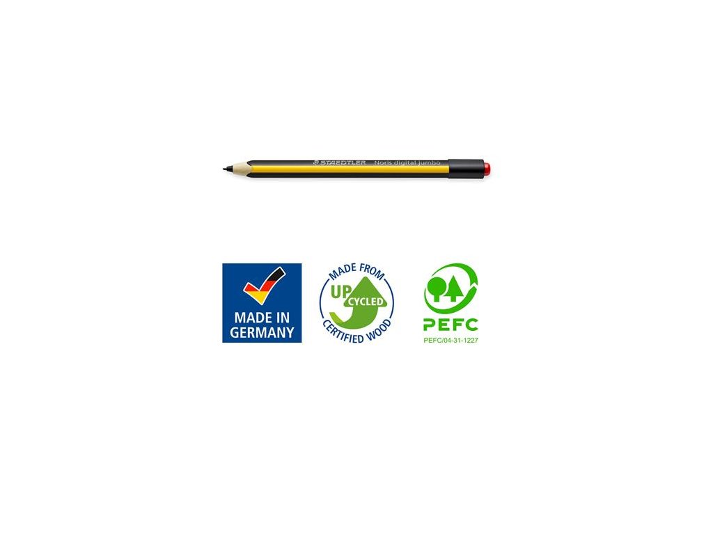 Zloženie tela ceruzky: približne 70 % dreva (100 % PEFC certifikované) + polymér + vosky + pigmenty