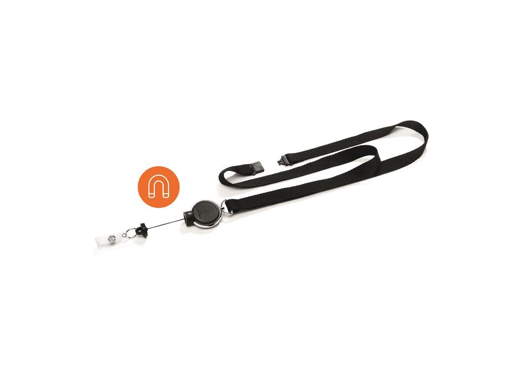 Držiak na identifikačné karty, výsuvný, na patent, s popruhom na zavesenie na krk, DURABLE "Extra Strong", čierna