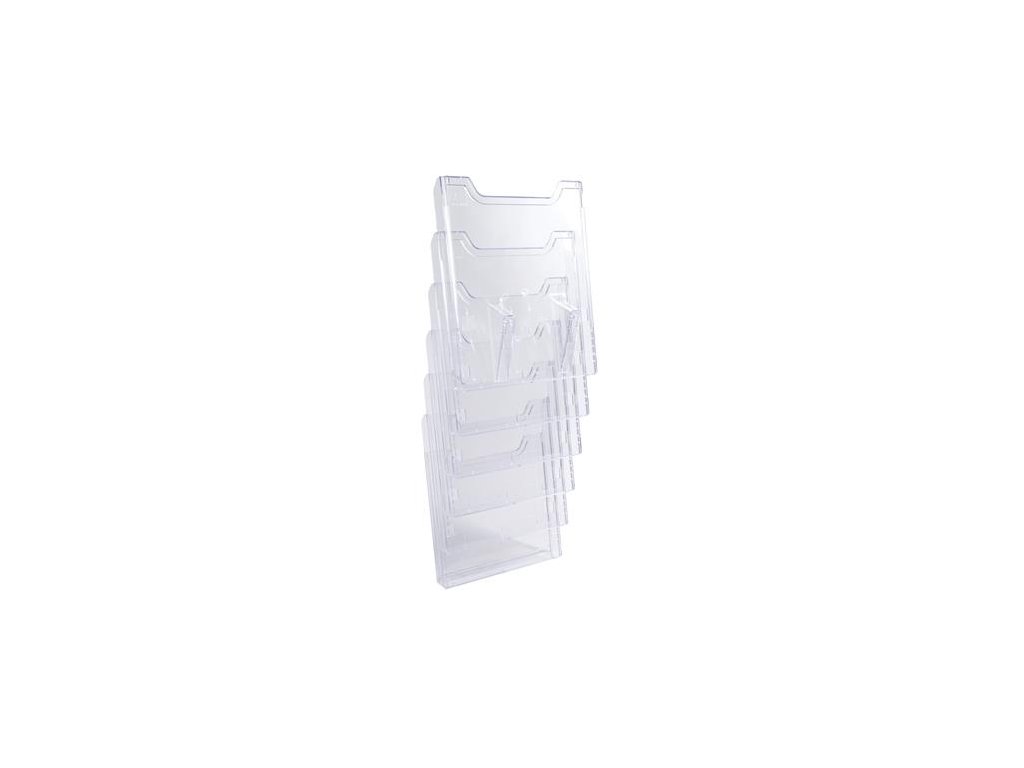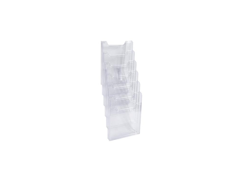 Držiak na katalógy, nástenný, A4, stojatý, 6 priehradiek, EXACOMPTA "Office", priehľadný