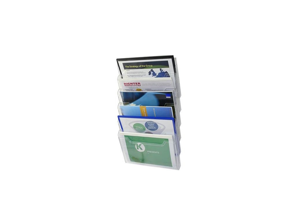 Držiak na katalógy, nástenný, ležatý, 6 priehradiek, EXACOMPTA "Office", priehľadný