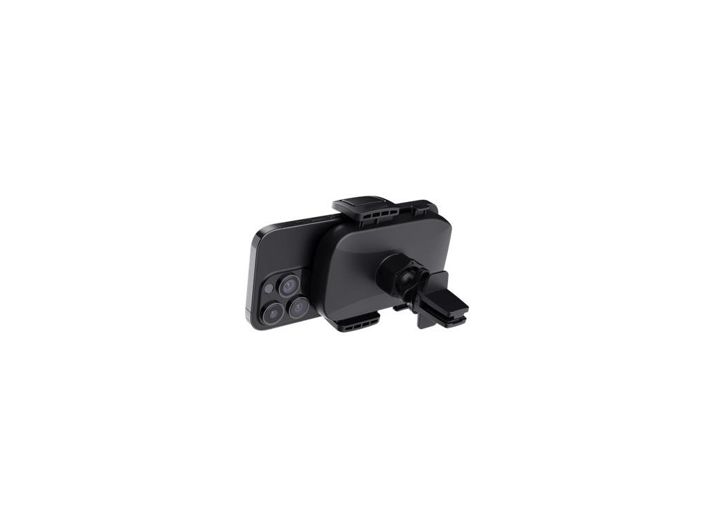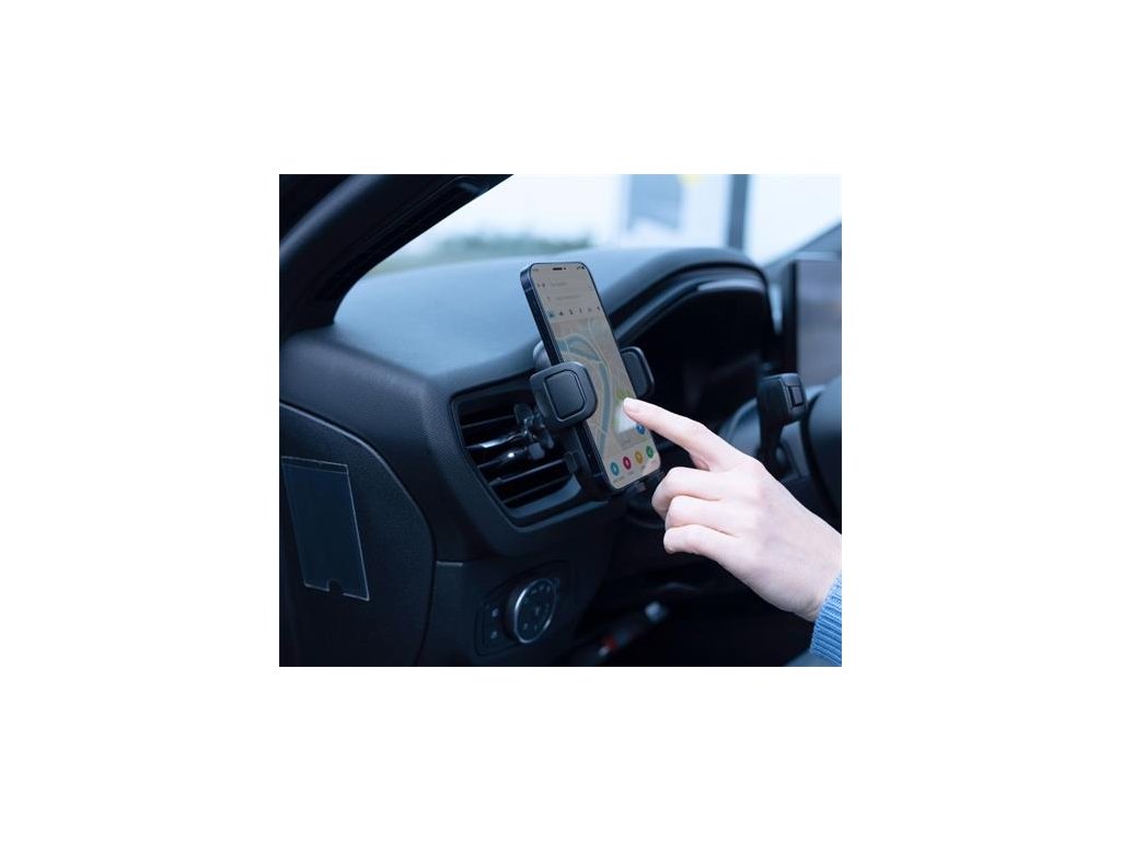 Držiak telefónu do auta, ktorý je možné uchytiť k ventilácii.- protišmyková rukoväť vďaka pogumovanej zadnej svorke