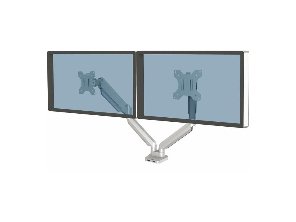 Držiak na monitory pre dva monitory, FELLOWES „Platinum Series™ Dual“, strieborný