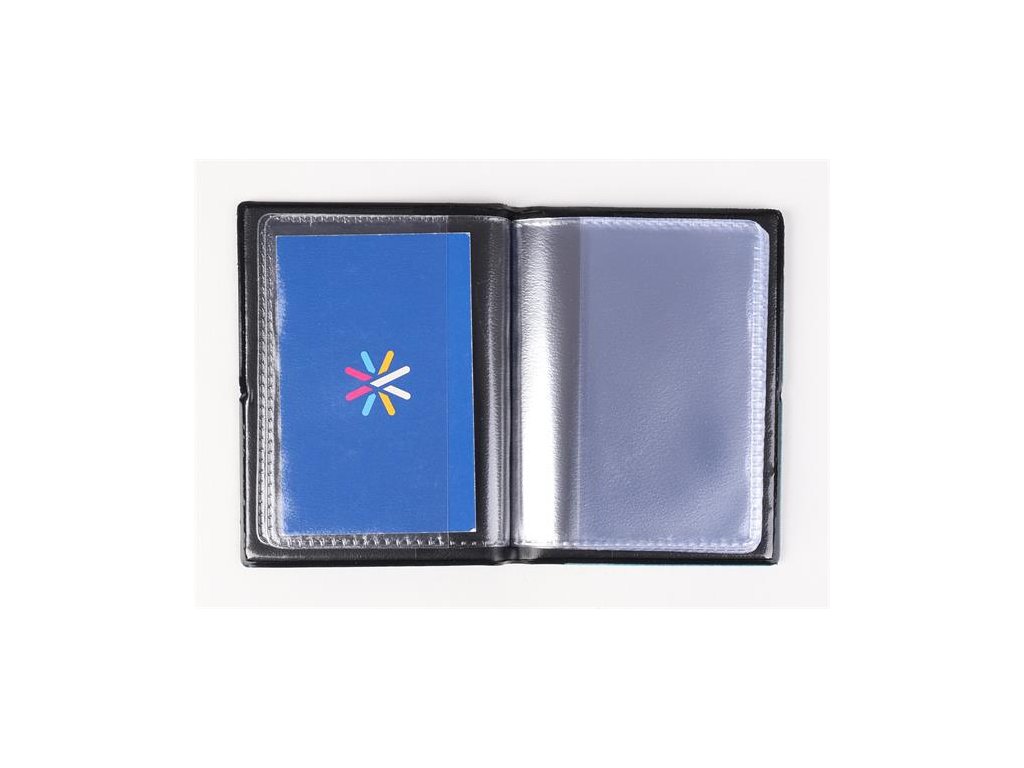 Puzdro na osobné doklady s kapacitou na 16+2+1 preukazy - tvrdý, vzorovaný PVC kryt - stojatý formát - počet listov: 16 - rozmery: 80×103 mm - hmotnosť: 56 g - použiteľné pre typy dokladov: plastový občiansky preukaz, karta trvalého pobytu, plastový vodičský preukaz, študentský preukaz, daňová karta, bankové a kreditné karty, plastové zbieracie a vernostné karty, iné doklady s rozmermi zhodnými s bankovou kartou.Dodatočné parametre