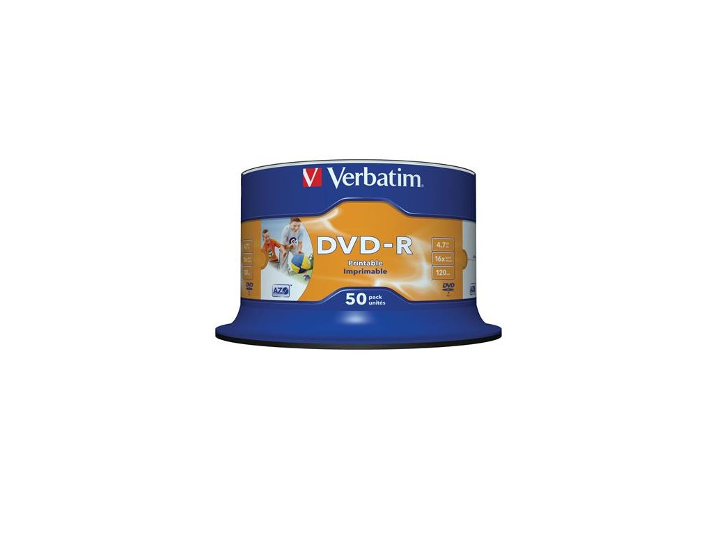DVD-R disk, potlačiteľný, matný, no-ID, 4,7GB, 16x, cake box, VERBATIM